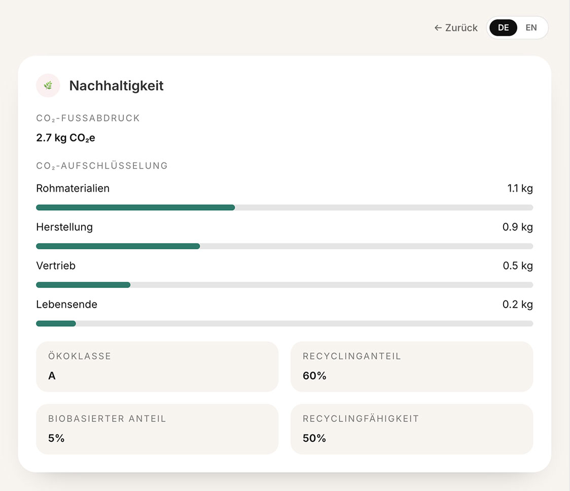 Shopify Produktseite mit DPP-Widget Shopify Produktseite mit DPP-Widget